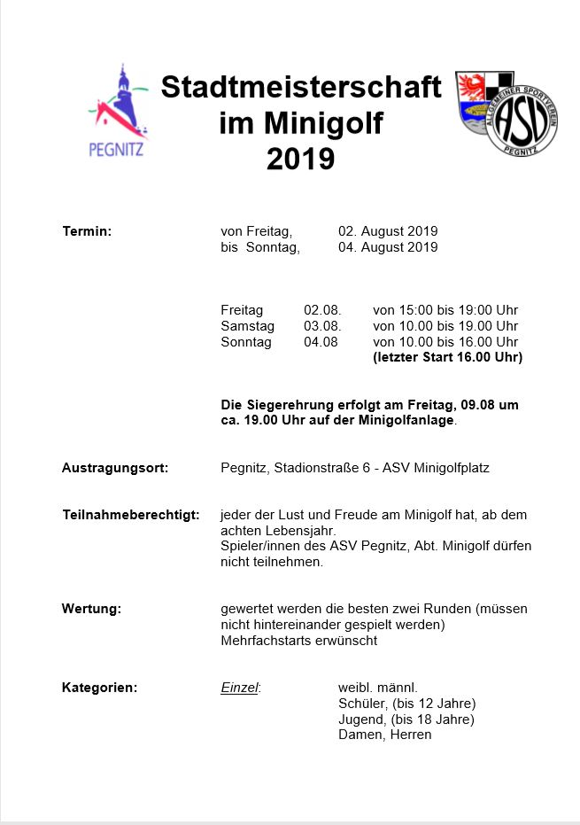hiermit möchten wir euch zur diesjähriger Stadtmeisterschaft in Minigolf recht herzlich einladen.